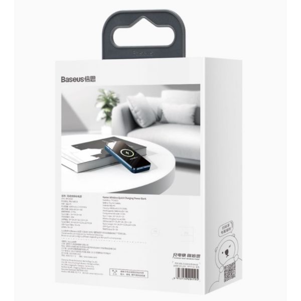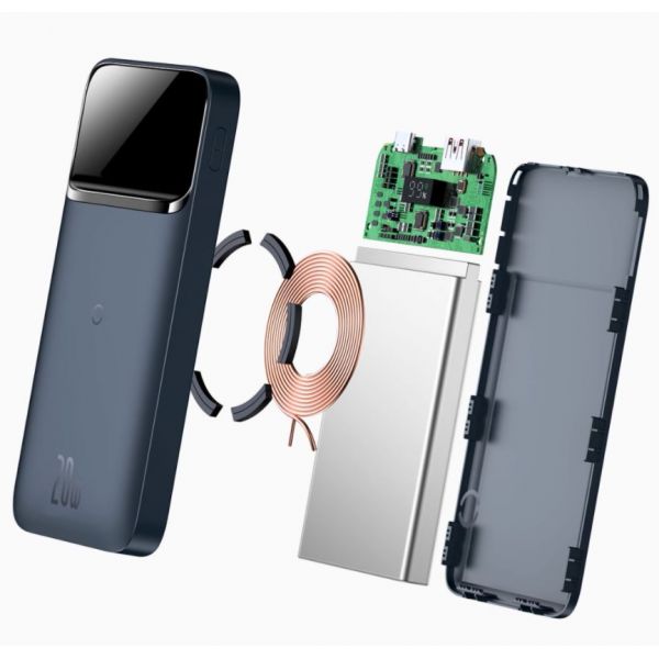 - Внешний аккумулятор Baseus Magnetic wireless quick charging Power Bank, 10000 мАч, USB-C, USB-A, синий.