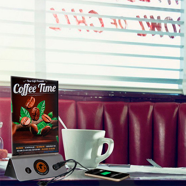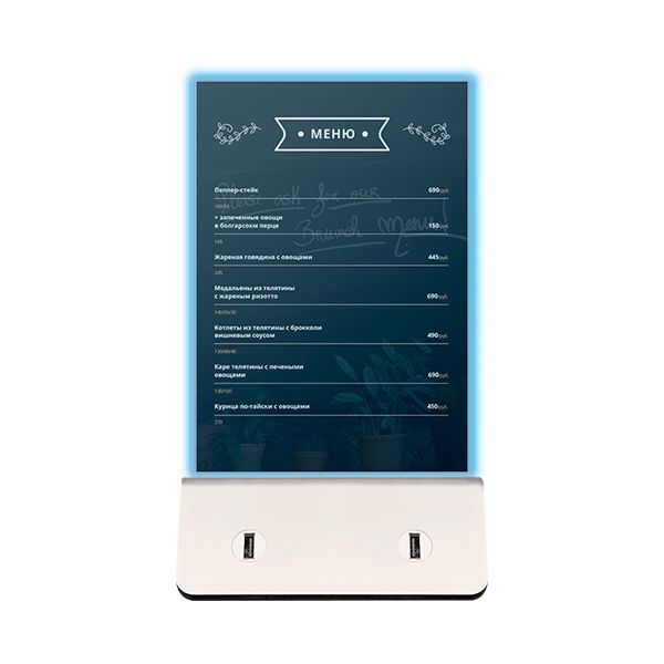 Предложите своим клиентам новый уровень комфорта, пока они ждут заказ в вашем кафе, баре или ресторане. Только представьте: клиент сделал заказ и на время ожидания поставил свой смартфон на зарядку, одновременно изучив дополнительное меню или выгодные акции и предложения, которые вы установили для него в меню-холдер.
