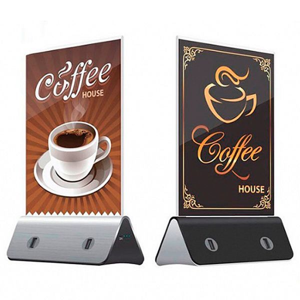 Просто установите в своем заведении зарядные устройства в виде меню-холдеров и разместите на них рекламное предложение или прайс услуг вашей компании, просто предложив клиенту подзарядить свой гаджет. На зарядку потребуется время, которое клиент с удовольствием потратит на изучение вашего заманчивого предложения, которым сразу и воспользуется, чтобы не терять драгоценное время.