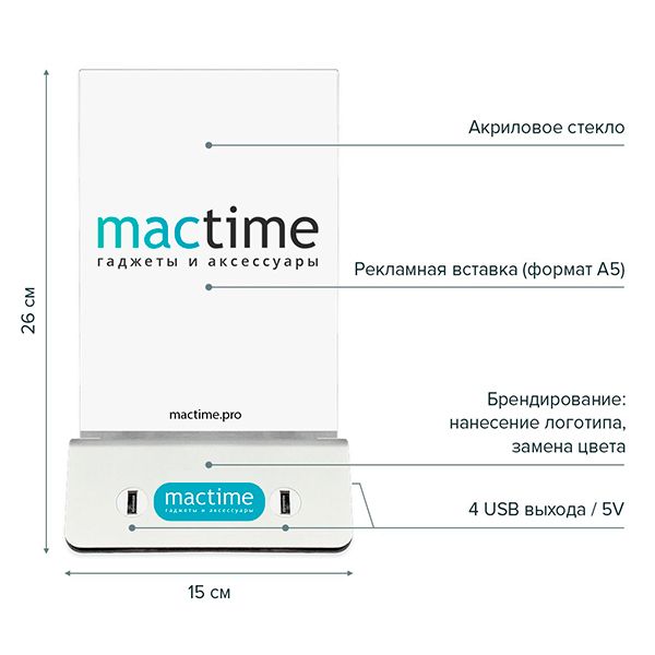 Зарядное устройство в виде меню-холдера на 4 USB (5 В)
