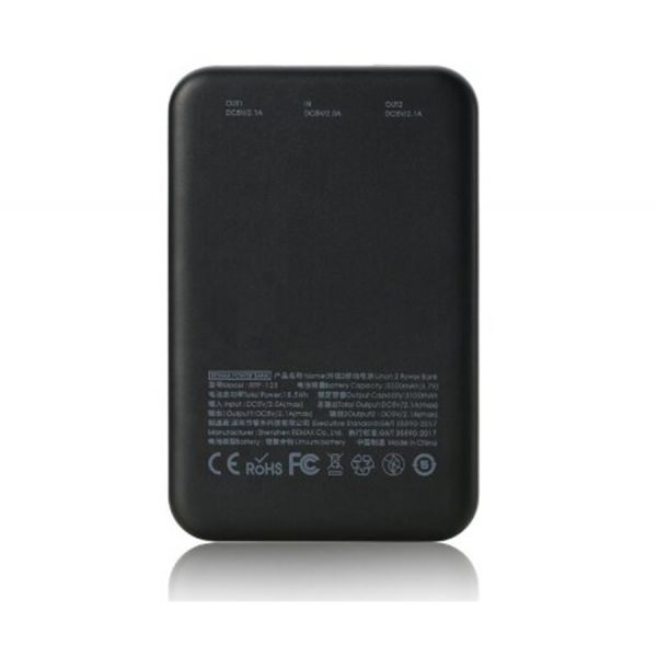 Внешний аккумулятор Remax Linon с запасом энергии в 5000 мАч, способен достаточно быстро восполнить заряд многих девайсов. Аккумулятор имеет корпус из поликарбоната. Девайс оснащён двумя выходными USB-портами, а также имеет интерфейс Micro-USB для восполнения собственного заряда. Также аккумулятор имеет 4 светодиода, которые позволяют визуально определять остаток заряда устройства. Небольшой вес для своей ёмкости и компактный размер повербанка являются неоспоримыми преимуществами данной модели.