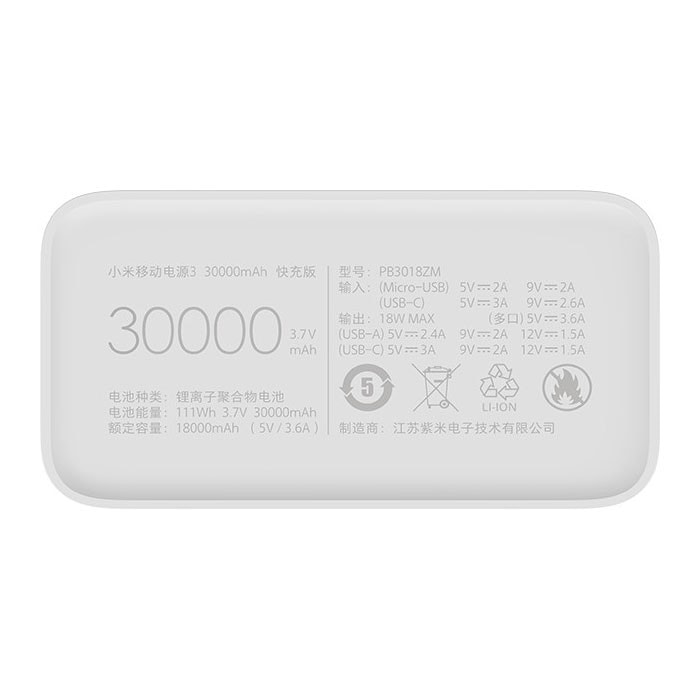 Аккумулятор внешний резервный XIAOMI 3 30000mAh Quick Charging Version белый