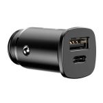 Автомобильное зарядное устройство Baseus Square Metal, USB-A и USB-C, 30 Вт, 5А, чёрный