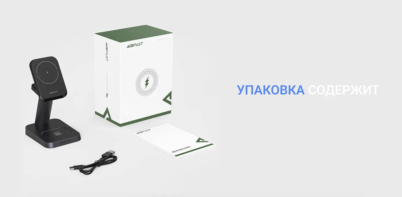 Зарядная станция Acefast E3, кабель USB‑C, руководство пользователя.