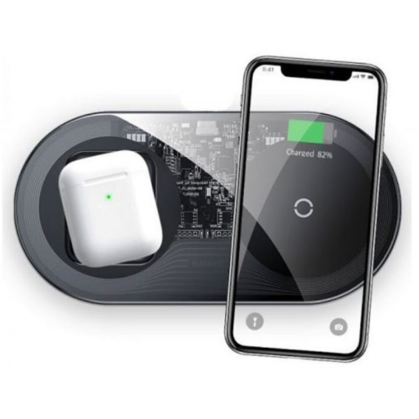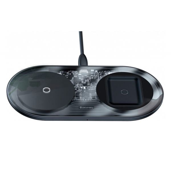 Беспроводное зарядное устройство Baseus Simple (Qi) 2 в 1, 15 Вт, 1A, прозрачный / чёрный