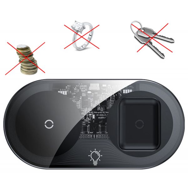 - Беспроводное зарядное устройство Baseus Smart, на 2 устройства, чёрный.