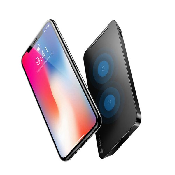 Baseus WXHSD-01 - беспроводное зарядное устройство, совместимое с последними моделями смартфонов от Apple. Оно использует беспроводную технологию стандарта Qi, благодаря которой коммуникатор может заряжаться при контакте с платформой. Передача электроэнергии допустима даже через чехол толщиной не более 3 мм. Модель сертифицирована и работает со всеми последними смартфонами Samsung, Nokia и LG. Зарядное устройство выполнено в виде прямоугольной базы с гладкой глянцевой поверхностью. Оно изготовлено из пластика с металлической отделкой по бокам. Такая ультратонкая конструкция может быть установлена вертикально или горизонтально. Для этого предусмотрены резиновые ножки против скольжения.