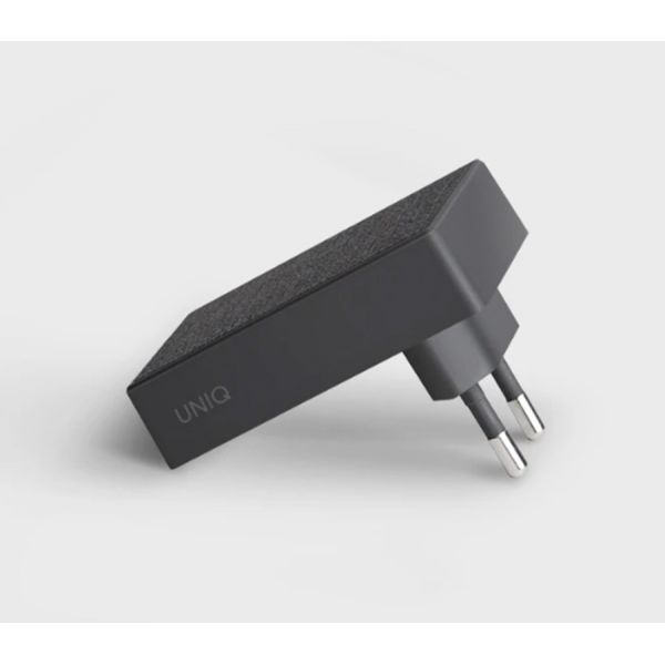 - Сетевое зарядное устройство Uniq Votre, USB-C, кабель USB-C/Lightning MFI, чёрный.