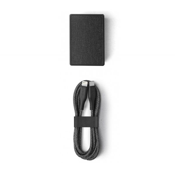 - Корпус выполнен из прочного пластика с отделкой из эко-кожи текстуры «канвас», благодаря чему зарядное устройство легко впишется в любой интерьер.