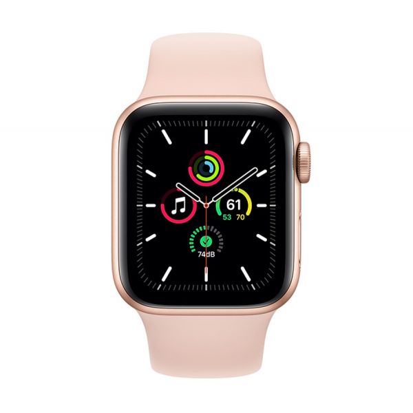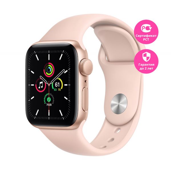 Apple Watch SE, 40 мм, золотой корпус, спортивный ремешок «розовый песок», RU