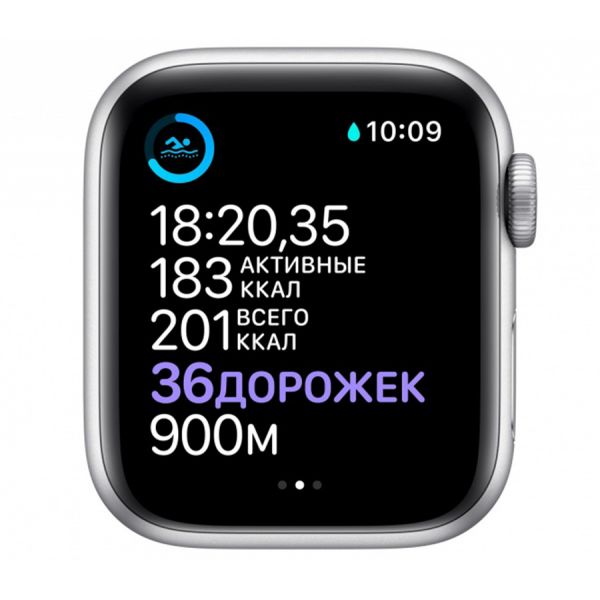 Apple Watch SE, 40 мм, серебристый корпус, спортивный ремешок белый, RU