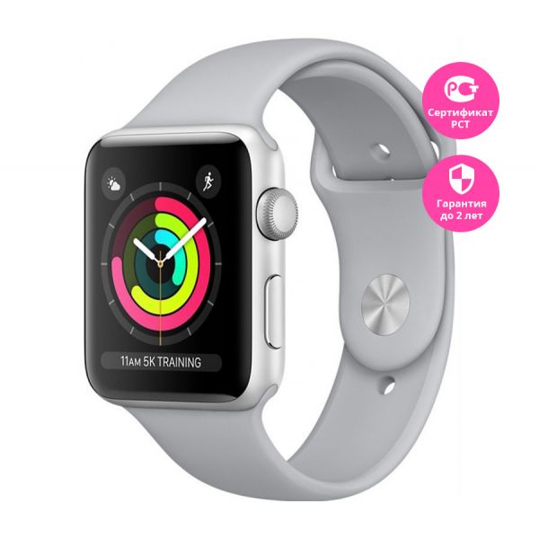 Apple Watch Series 3, 38 мм, серебристый корпус, спортивный ремешок "дымчатый"