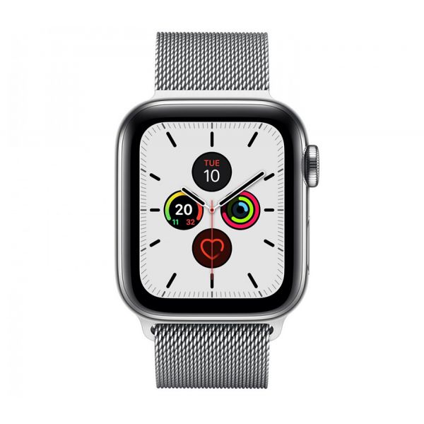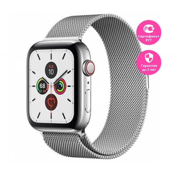 Apple Watch Series 5, 40 мм, корпус серебристый, миланский сетчатый браслет серебристый