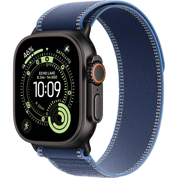 Apple Watch Ultra 3 (2025), 49 мм, корпус «чёрный титановый», ремешок Trail синий/ярко-синий (M/L)