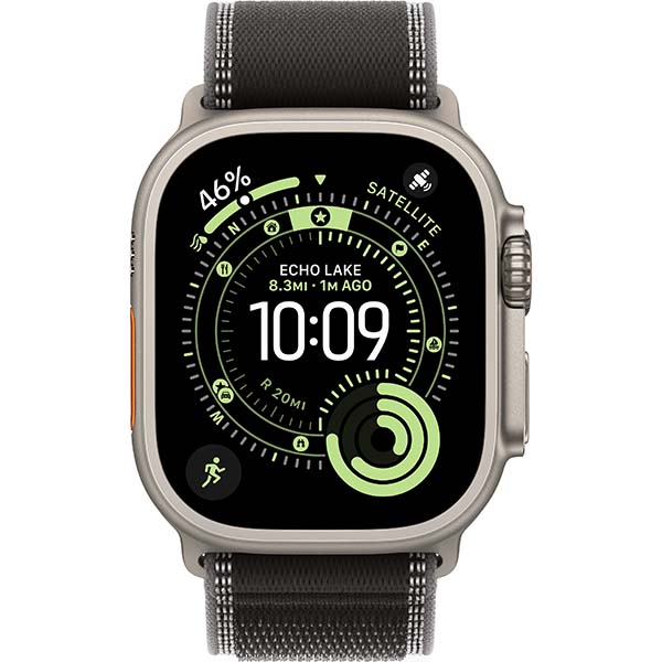 Apple Watch Ultra 3 (2025), 49 мм, корпус «натуральный титановый», ремешок Trail чёрный/угольно-чёрный (M/L)