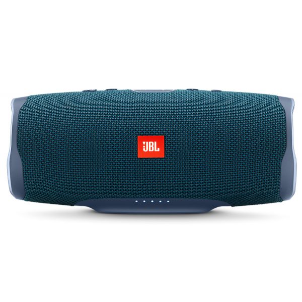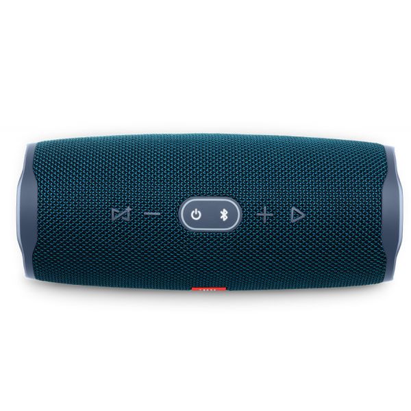 JBL Charge 4 — это портативная колонка с Bluetooth-подключением и мощным заполняющим звуком. Она имеет удобную цилиндрическую форму, а корпус защищен от попадания влаги и пыли по стандарту IPX7. Модель имеет 4 встроенных динамика и два пассивных радиатора, расположенных с торцов корпуса. Кнопки управления расположены сверху колонки, а снизу имеется LED-индикация заряда батареи. Поддержка фирменной технологии Connect+ позволяет объединить до 100 аналогичных акустических систем в единое целое, расширяя площадь звукового покрытия. Для линейного подключения колонки она оснащена разъемом 3.5 мм. Также имеется USB-интерфейс, который можно использовать для подзарядки мобильных девайсов от аккумулятора колонки.
