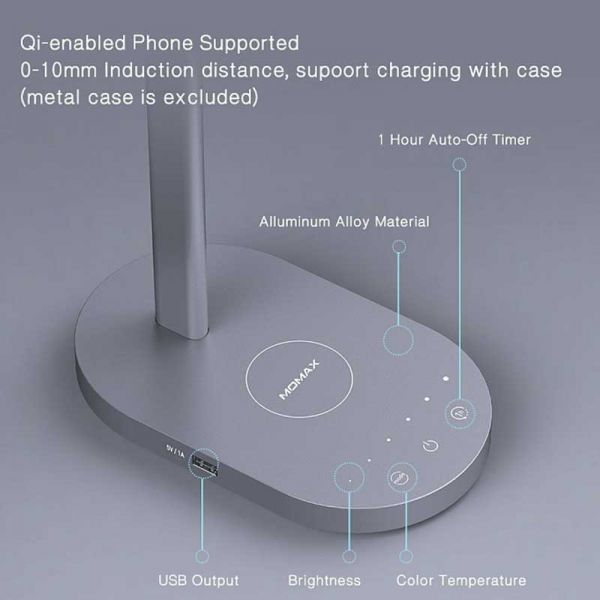 Momax - это устройство, которое совмещает в себе настольную лампу и платформу для беспроводной зарядки смартфонов. Лампа имеет регулировку яркости и температуры света, а также выбор угла наклона. Кроме того, в модели предусмотрен выход USB для проводной зарядки смартфонов или планшетов.