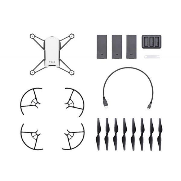Комплект Ryze Tello Boost Combo отличается от стандартного наличием 2-х дополнительных батарей, зарядным хабом для аккумуляторов Tello и кабелем Micro-USB.