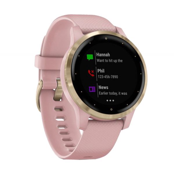 - Умные-часы Garmin Vivoactive 4S, золотой циферблат, розовый ремешок.