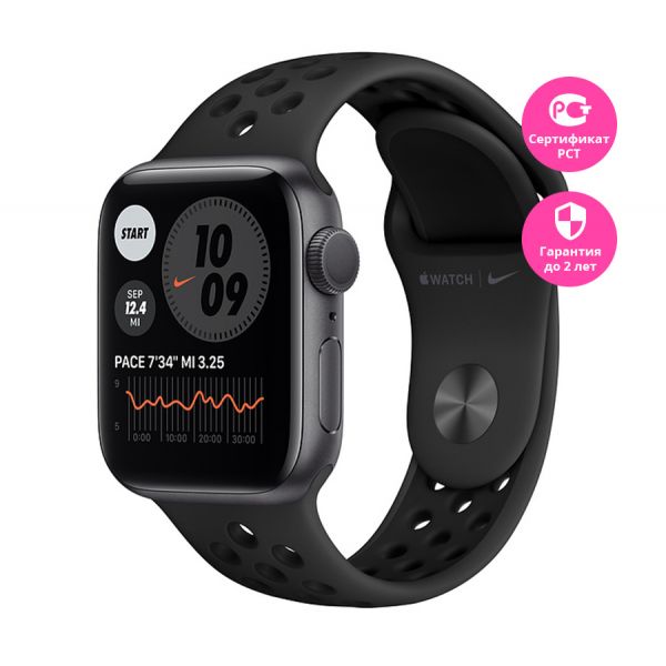 Apple Watch Series 6, 40 мм, «серый космос» корпус, спортивный ремешок Nike «антрацитовый/чёрный»