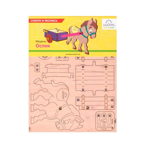 - Деревянный 3D-пазл раскраска Ugears "Ослик".